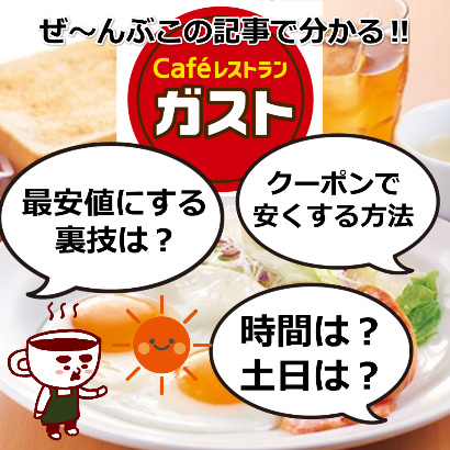 “【ガスト】モーニングは何時まで?食べ放題やカロリー、クーポン、土日のメニュー最新情報” への4件のフィードバック